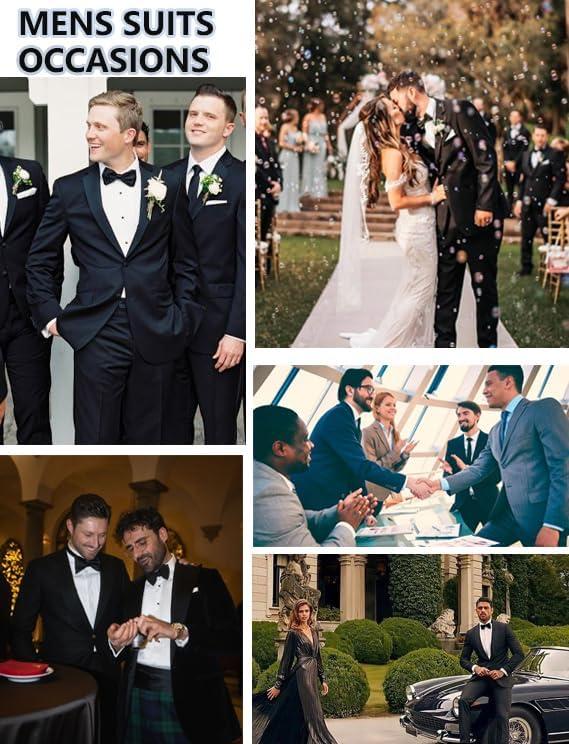 COOFANDY Mens Tuxedo Suit Set Slim Fit 2 Piece One Button Christmas Blazer Jacket Pants for Wedding,Dinner,Prom(Dark Gray)