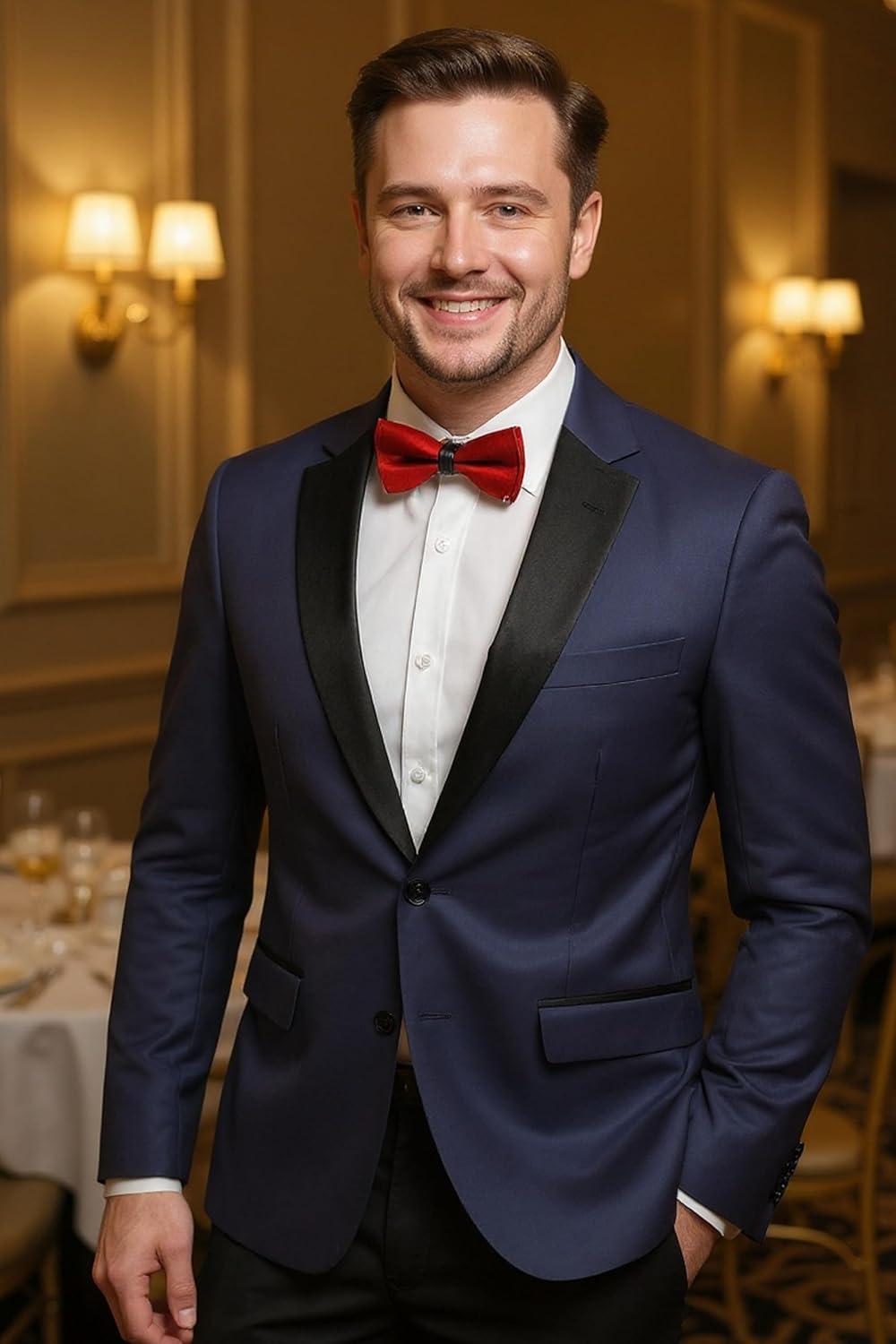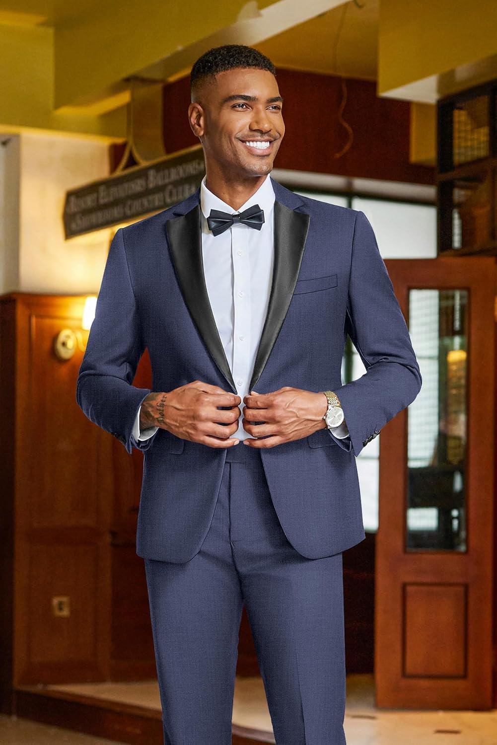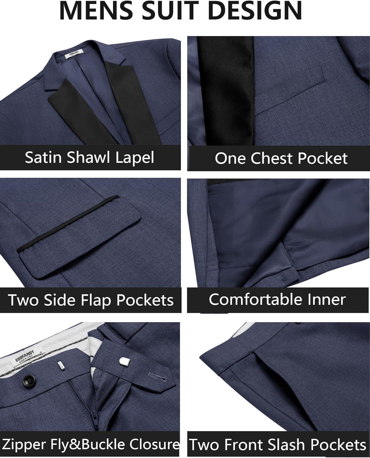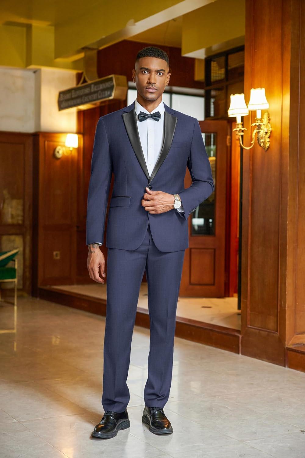COOFANDY Mens Tuxedo Suit Set Slim Fit 2 Piece One Button Christmas Blazer Jacket Pants for Wedding,Dinner,Prom(Navy Blue)