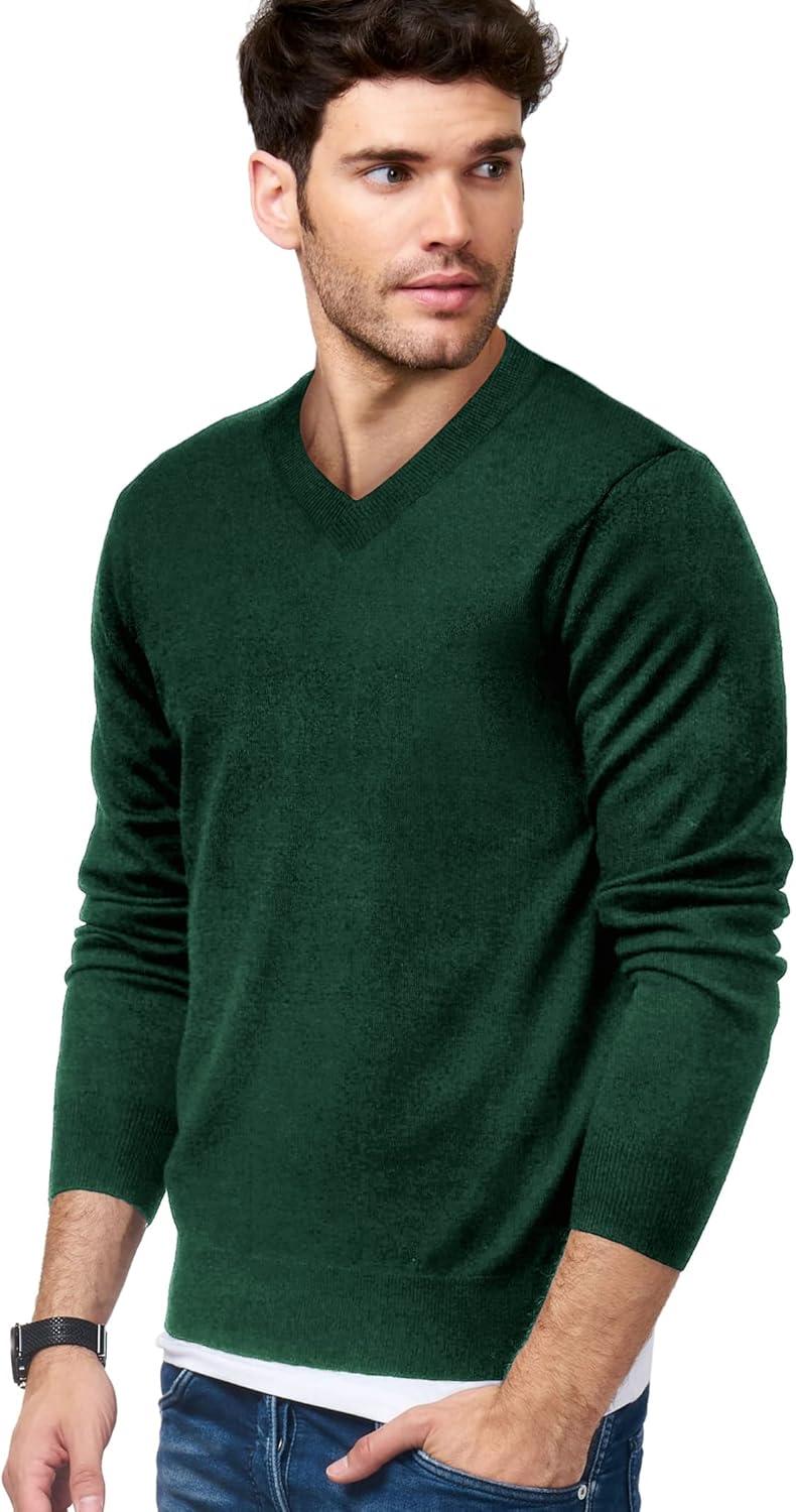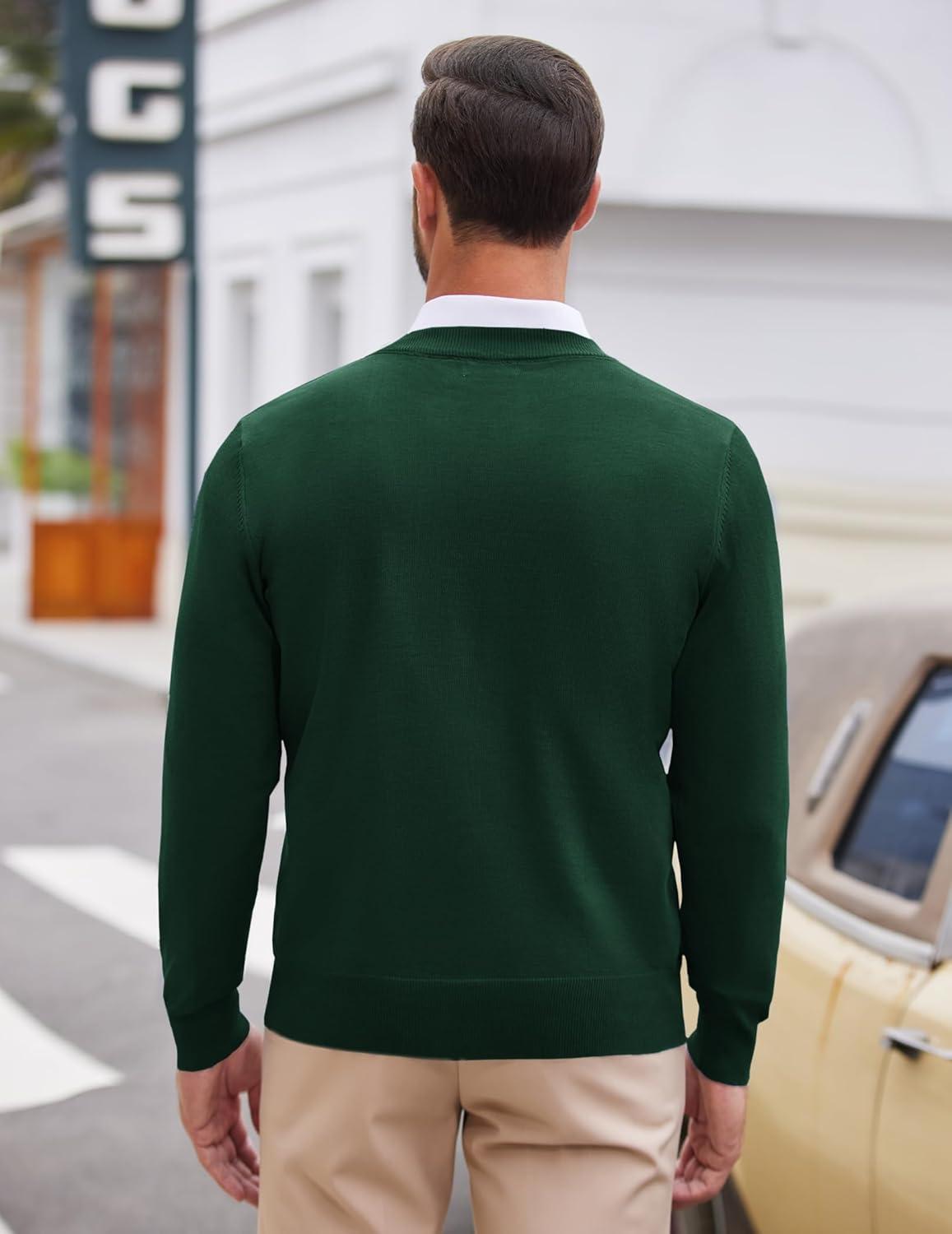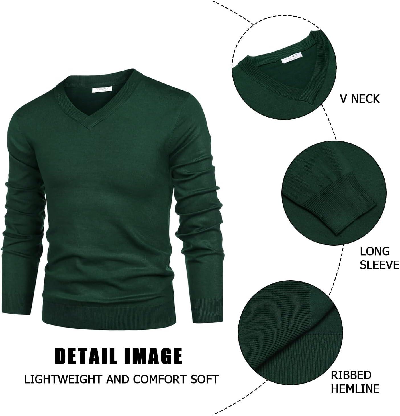 COOFANDY Mens V Neck Dress Sweater Knit Long Sleeve Slim Fit Sweaters Fashion Pullover Sweater(Green)
