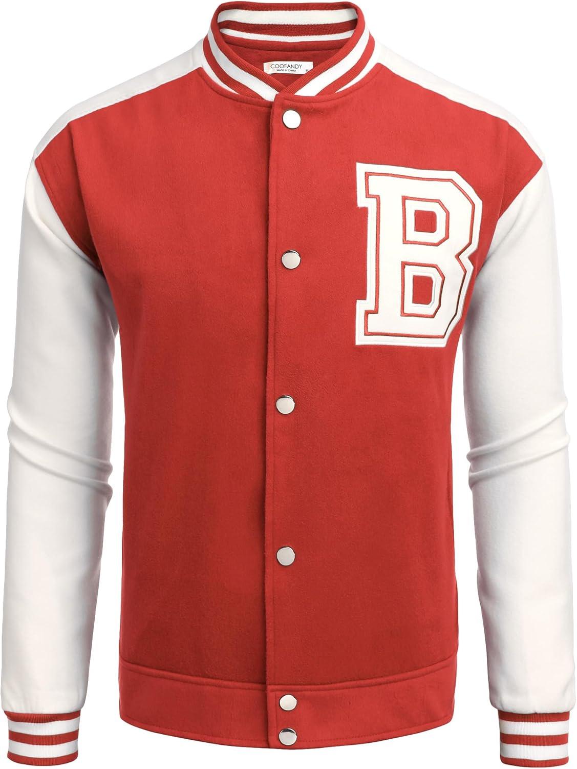 COOFANDY Men’s Varsity Jacket Wool Blend Letterman Bomber Jacket Baseball Lightweight Jacket(Red)