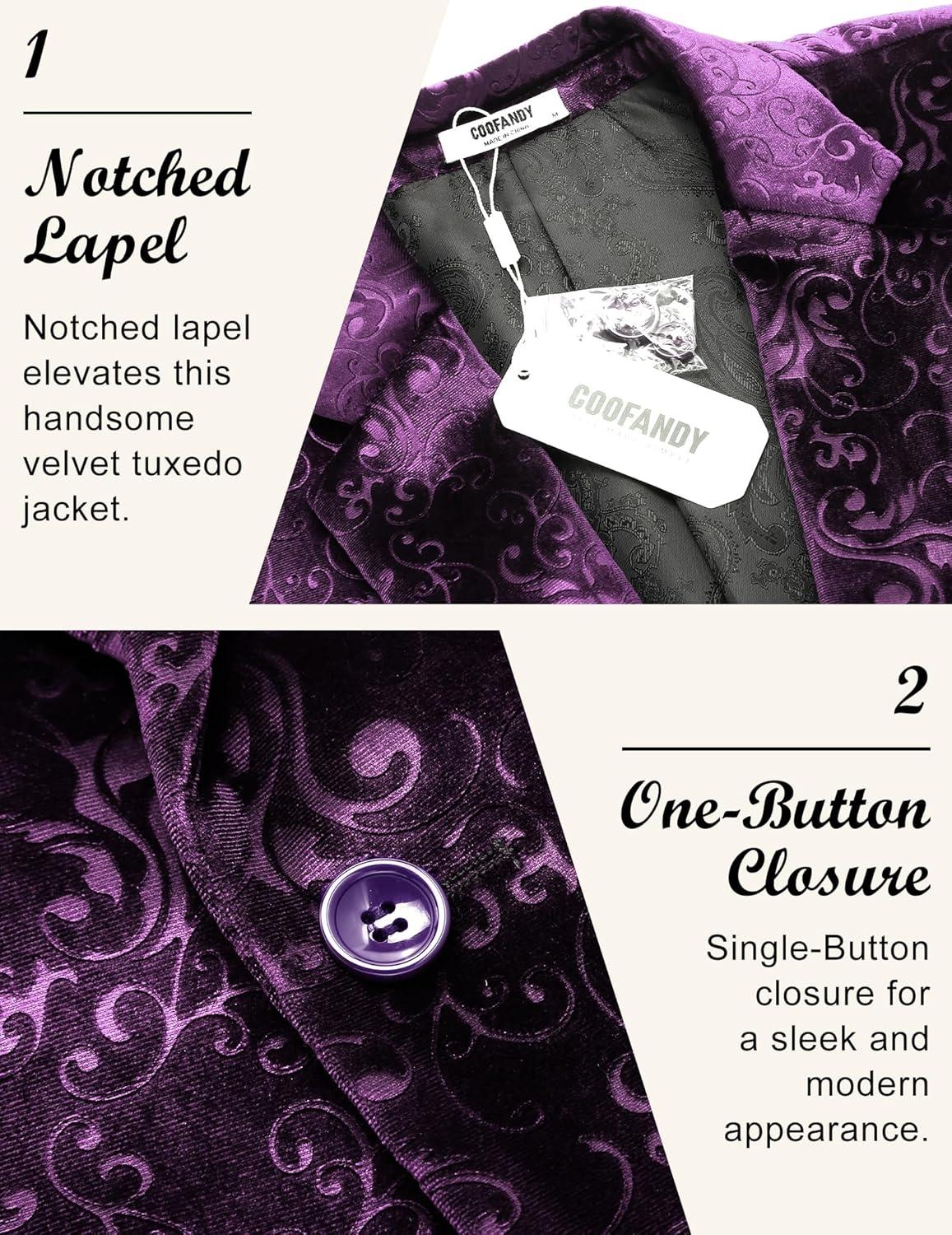 Be the first to review “COOFANDY Men’s Velvet Blazer Notched Lapel Velour Suit Jacket One Button Tuxedo Jackets for Wedding Prom Party Dinner(Purple Retro Floral)”