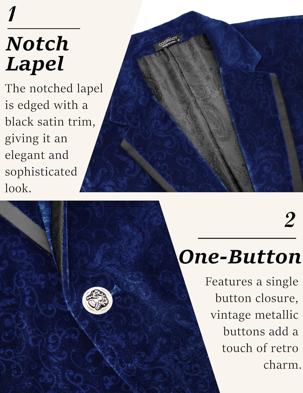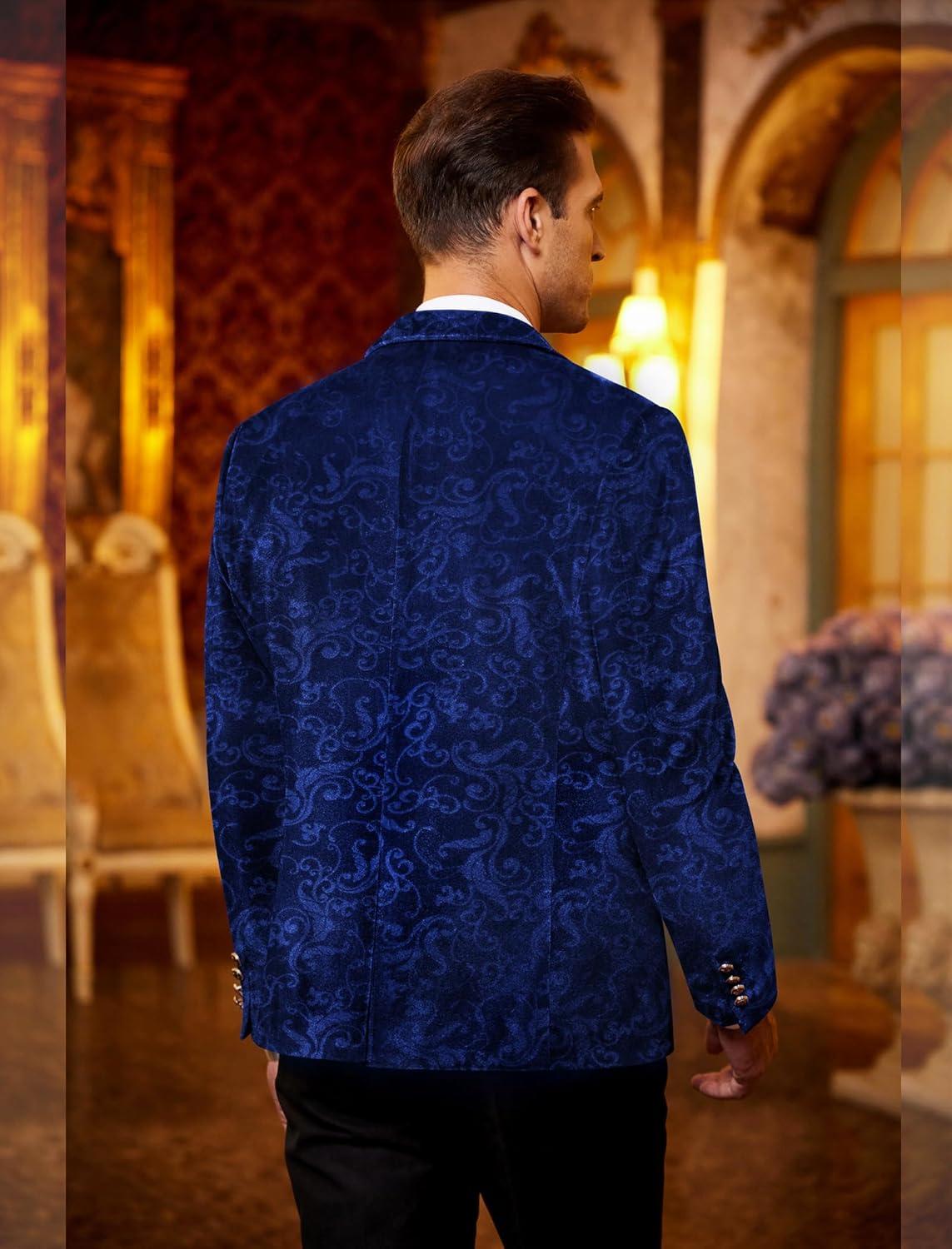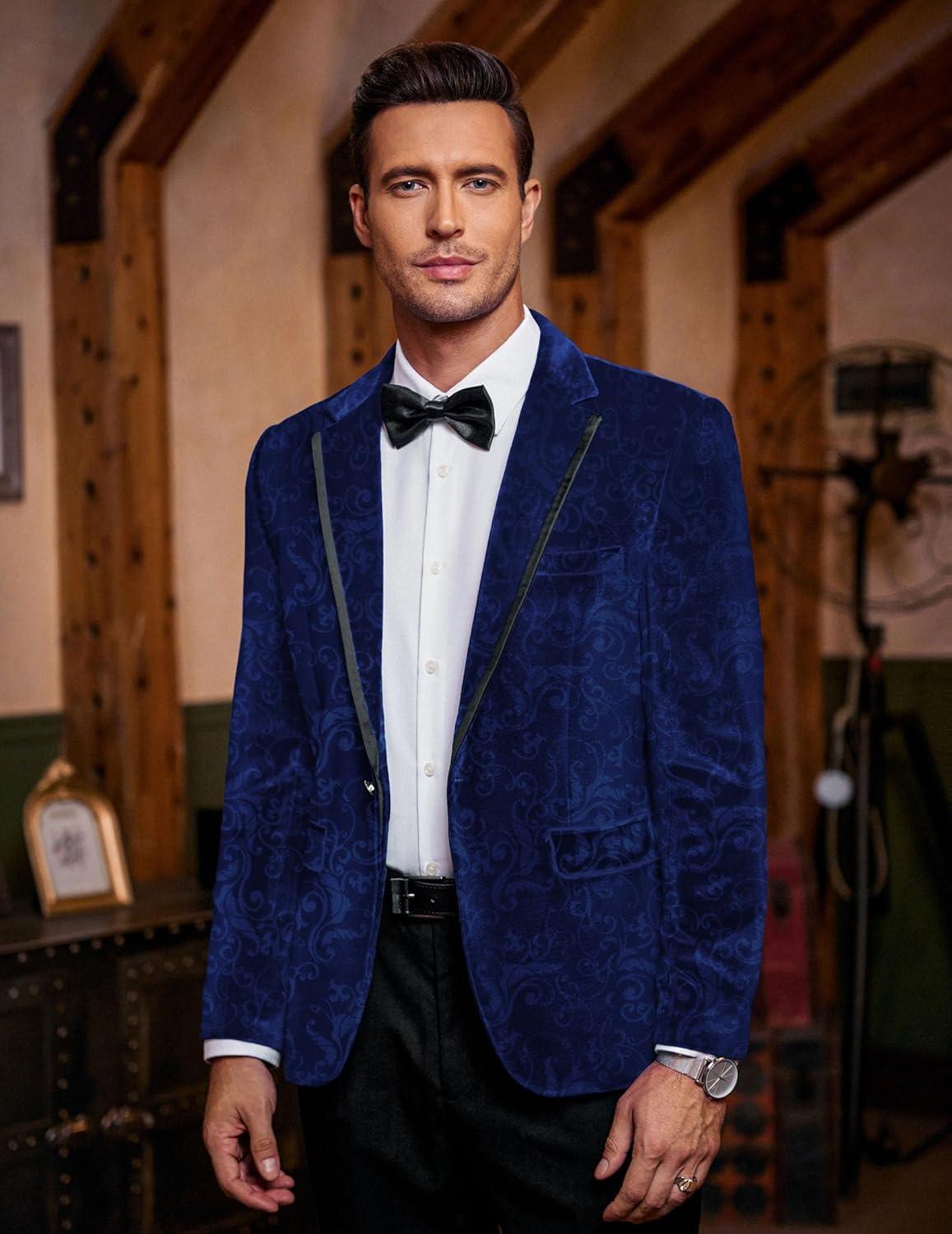 COOFANDY Men’s Velvet Blazer One Button Velour Tuxedo Jacket Notched Lapel Suit Jackets for Prom Wedding Party Dinner(Blue Retro Floral)