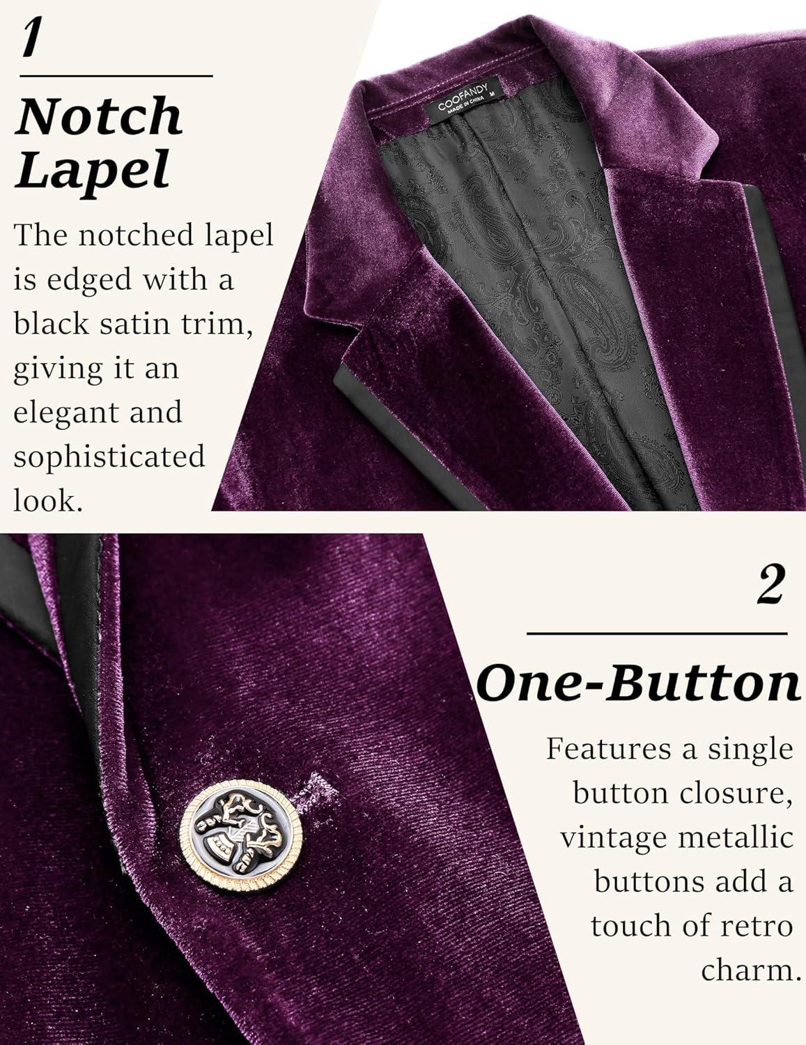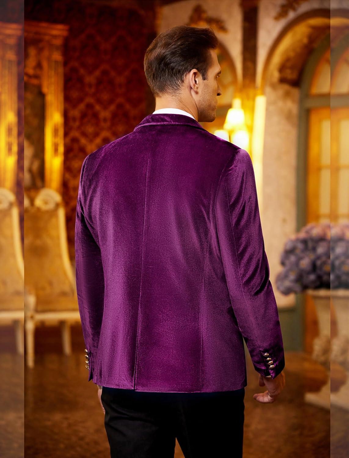 COOFANDY Men’s Velvet Blazer One Button Velour Tuxedo Jacket Notched Lapel Suit Jackets for Prom Wedding Party Dinner(Purple)
