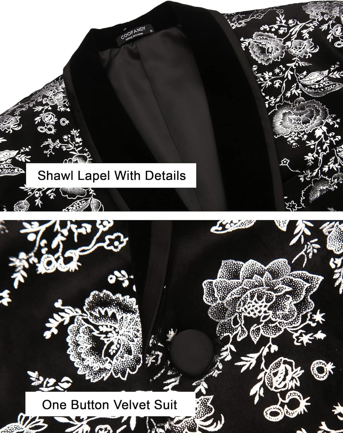 imageCOOFANDY Mens Velvet Tuxedo Floral Blazer Jacket One Button Shawl Lapel Suit Jacket for Dinner Prom Party WeddingWhite