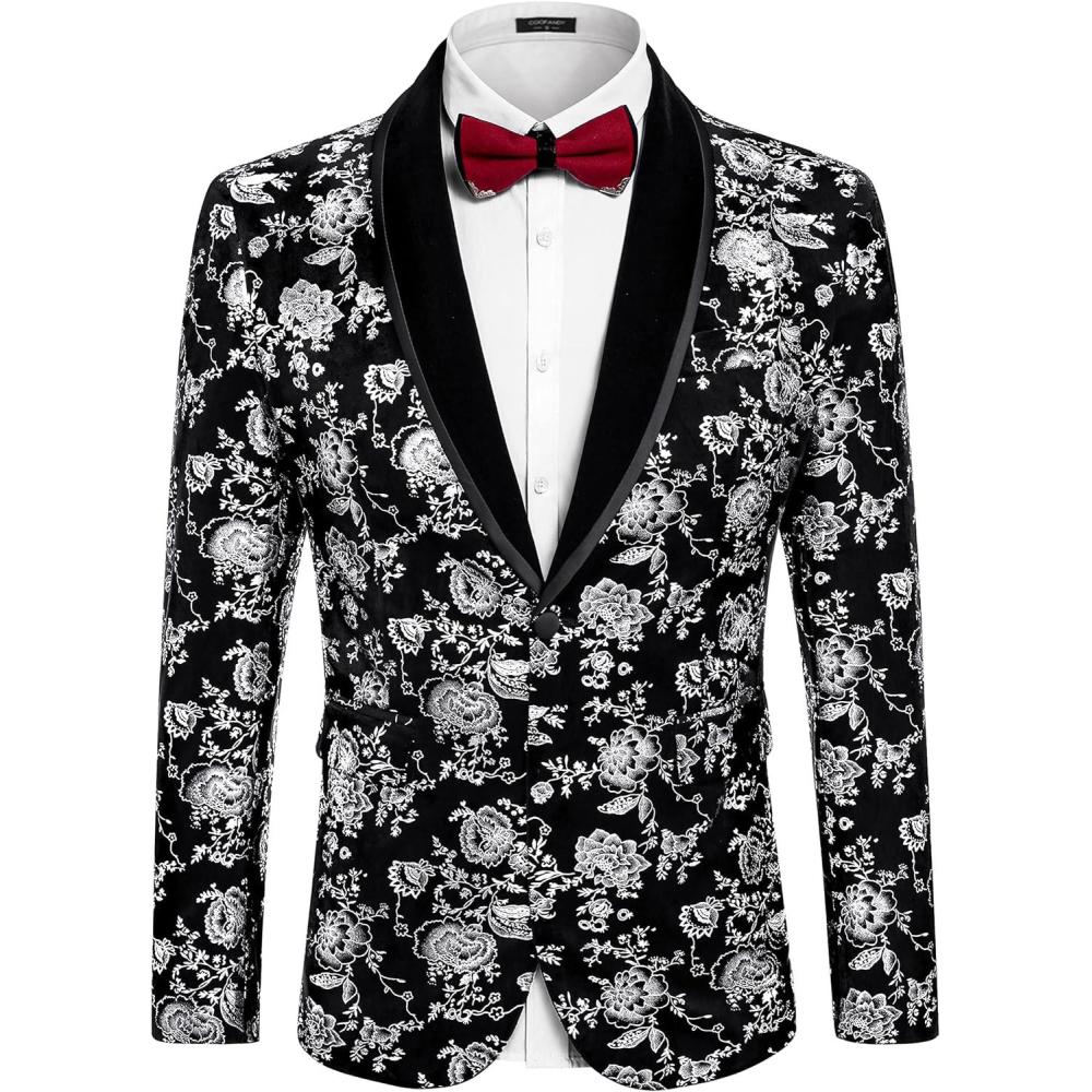 Be the first to review “COOFANDY Men’s Velvet Tuxedo Floral Blazer Jacket One Button Shawl Lapel Suit Jacket for Dinner Prom Party Wedding(Silver)”