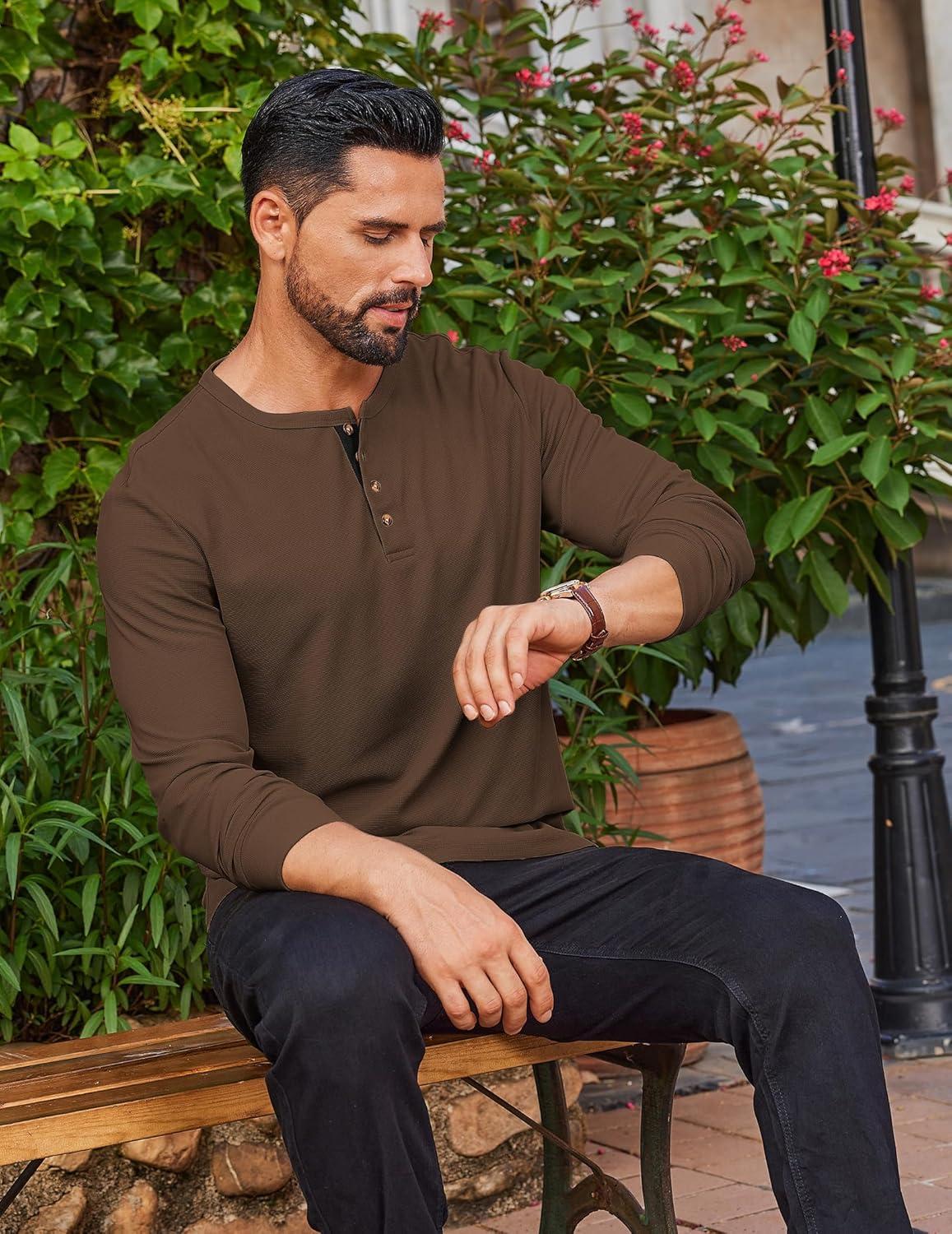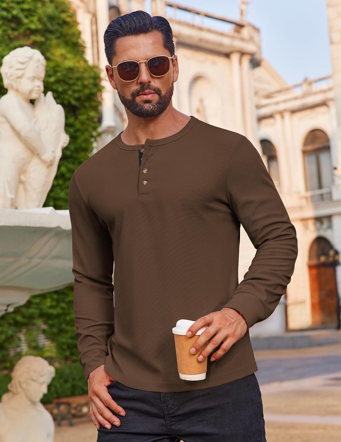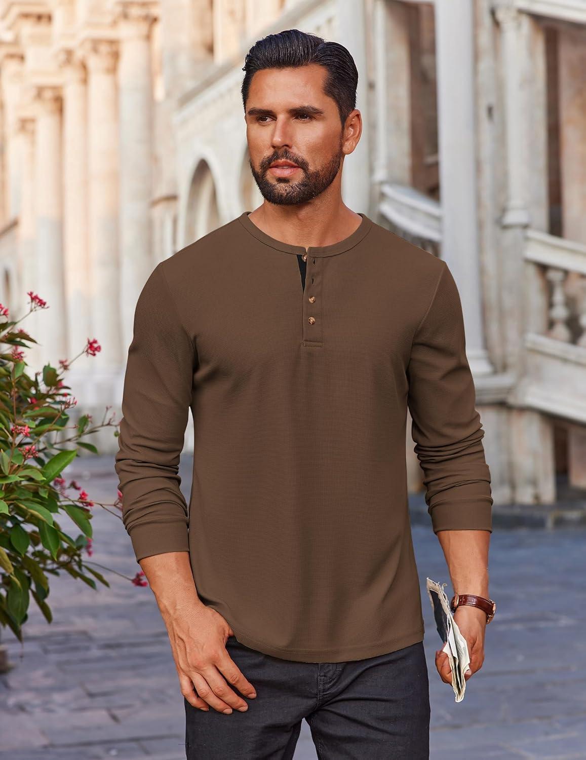 Don’t miss out on our limited-time offer: buy COOFANDY Mens Waffle Henley Shirts Long Sleeve Casual T-Shirt Basic Lightweight Pullover Tees(Brown), get {accessory} 50% off!