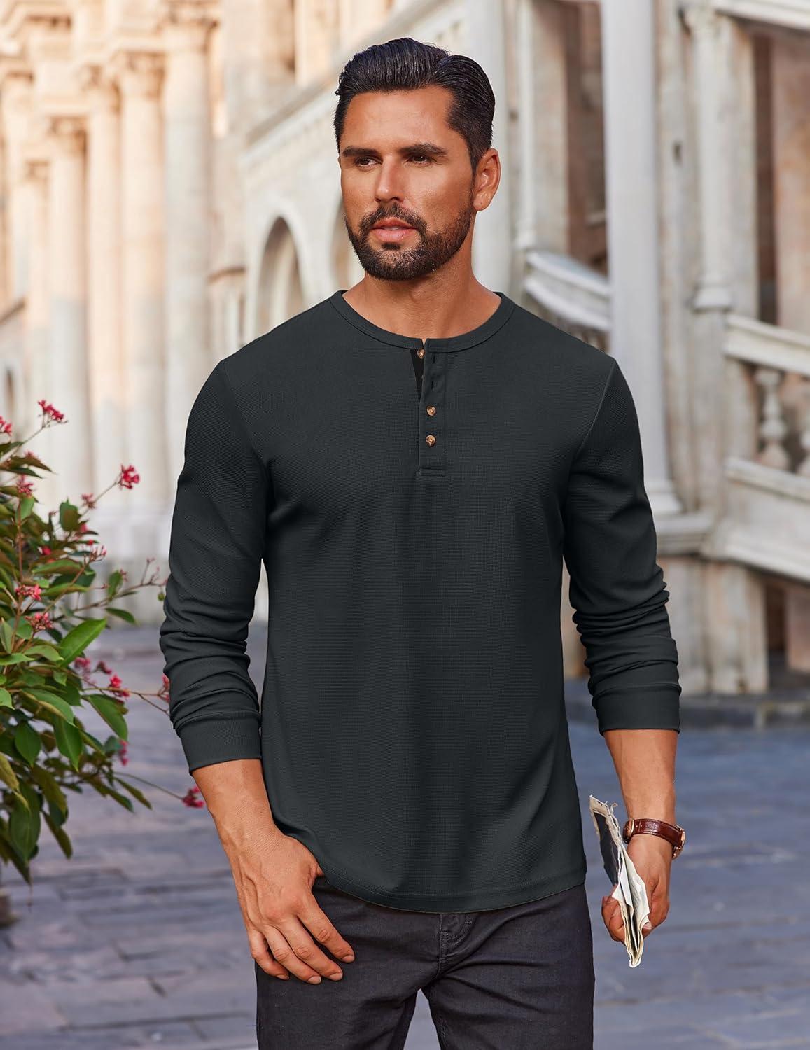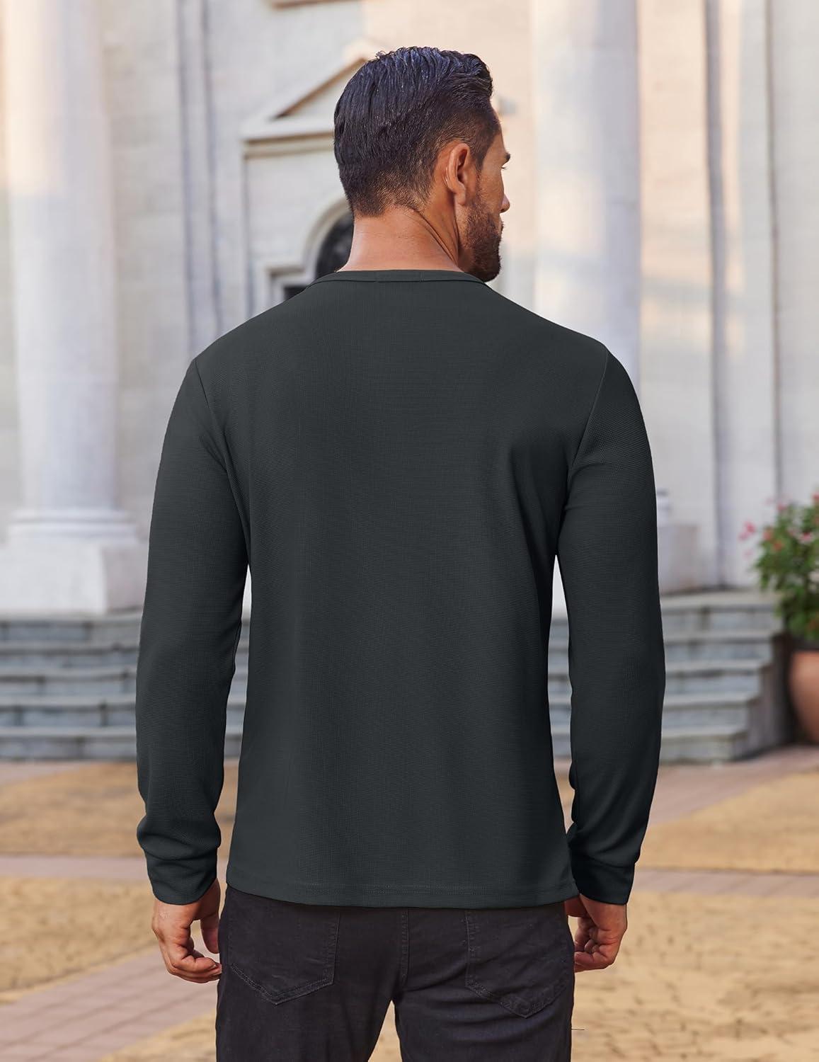 COOFANDY Mens Waffle Henley Shirts Long Sleeve Casual T-Shirt Basic Lightweight Pullover Tees(Gray Blue)