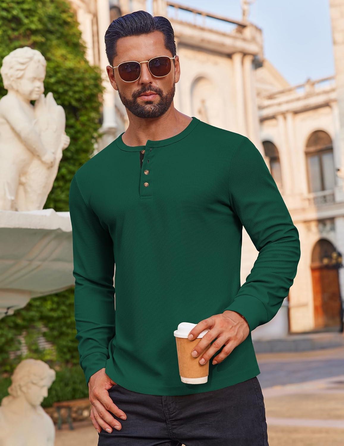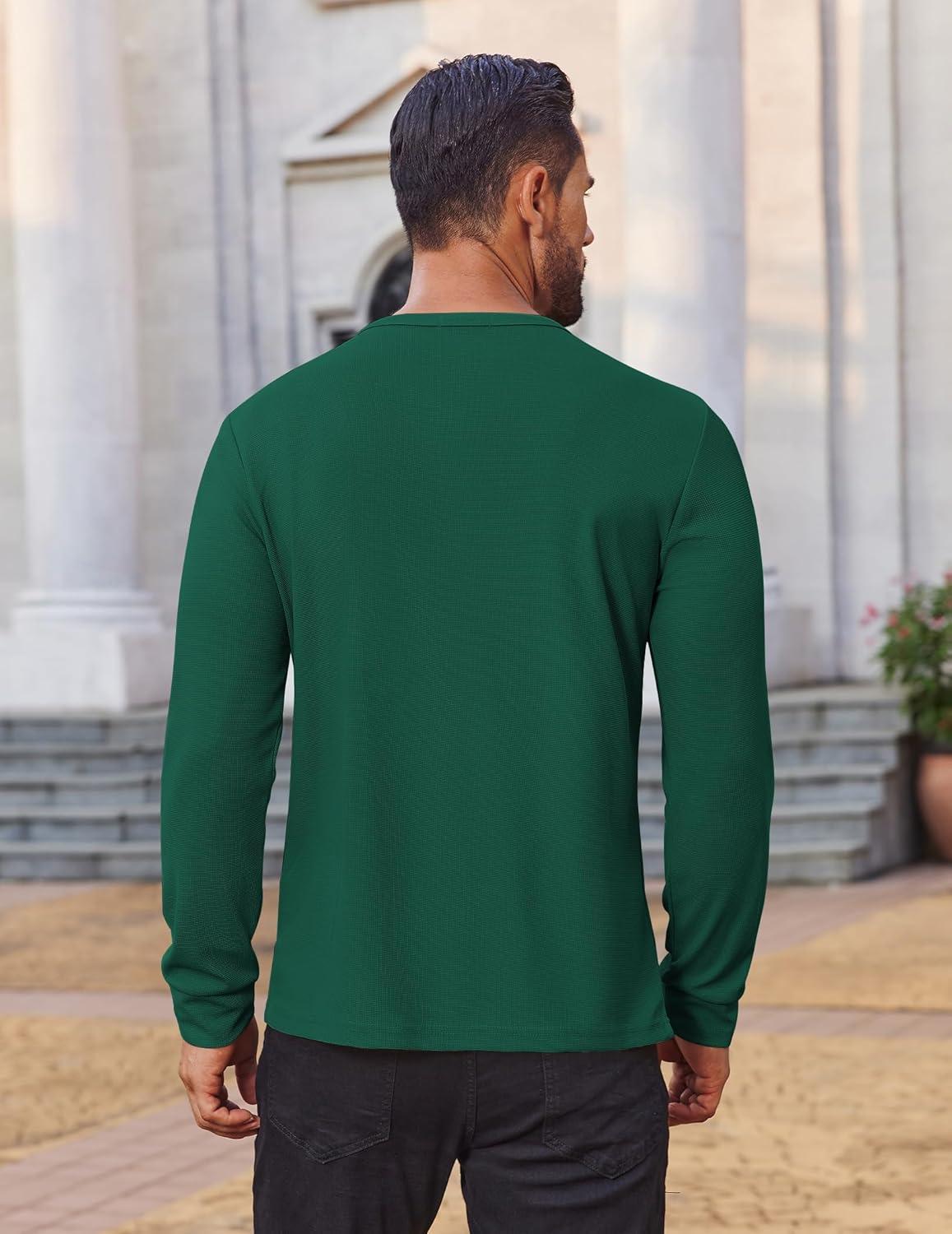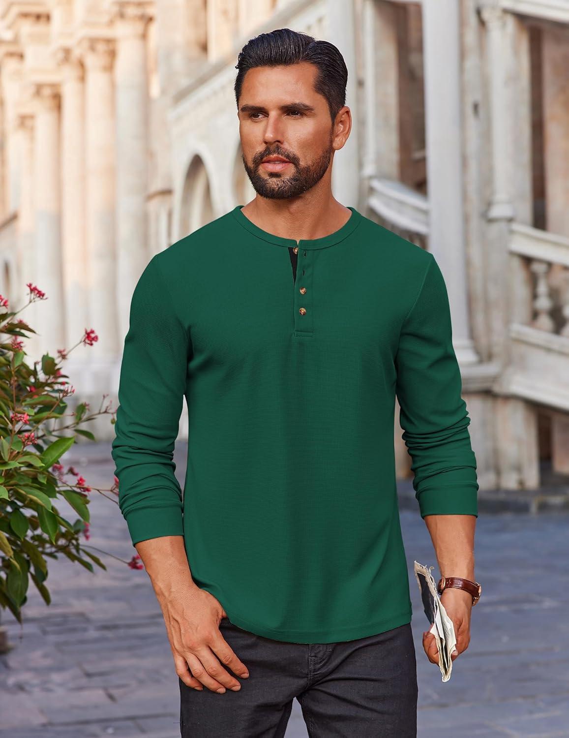 Get your hands on our exclusive COOFANDY Mens Waffle Henley Shirts Long Sleeve Casual T-Shirt Basic Lightweight Pullover Tees(Green) collection, now at a discounted price.