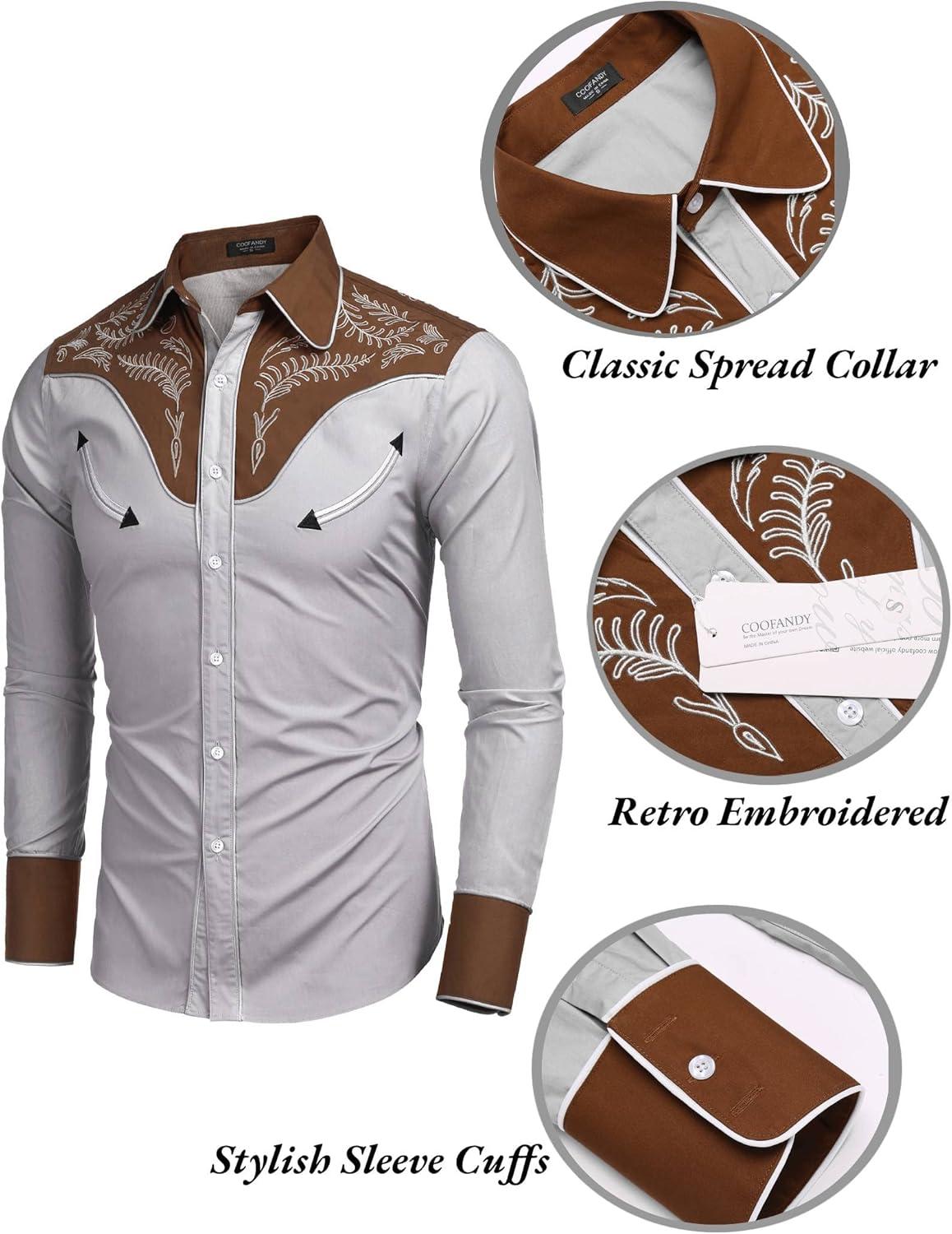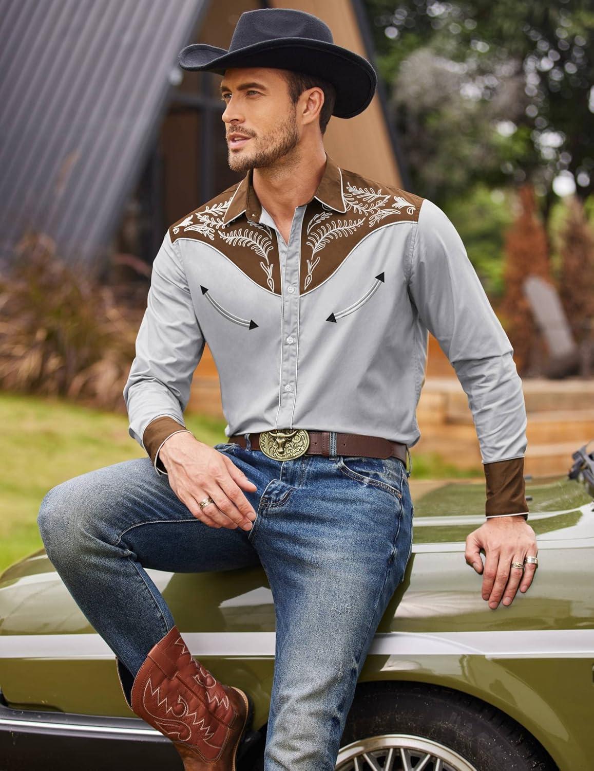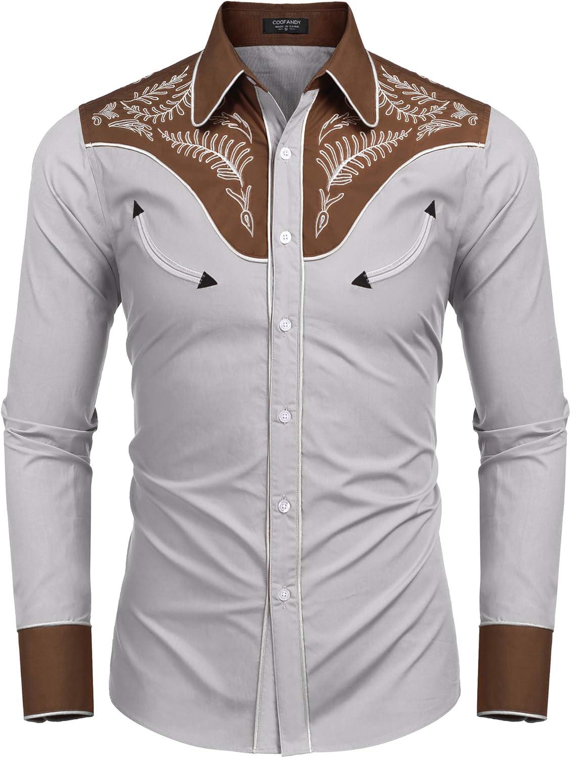 COOFANDY Men’s Western Cowboy Shirt Embroidered Button Down Long Sleeve Shirts(Cotton – Grey)