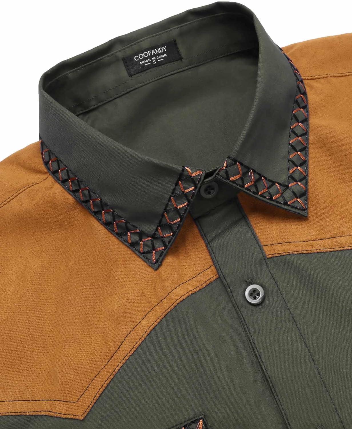 COOFANDY Men’s Western Cowboy Shirt Embroidered Long Sleeve Slim Fit Casual Cotton Button Down Hippie Shirts with Pockets(Brown & Black)