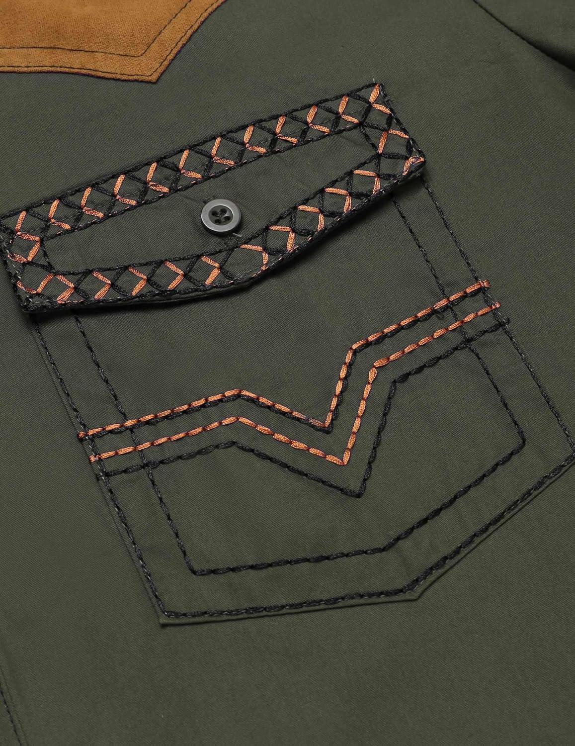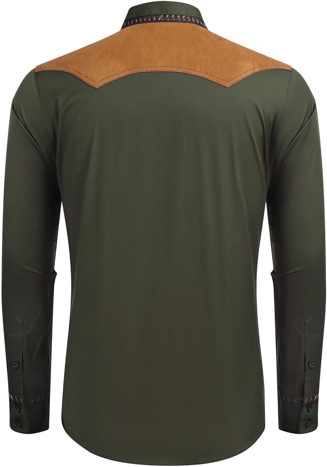 COOFANDY Men’s Western Cowboy Shirt Embroidered Long Sleeve Slim Fit Casual Cotton Button Down Hippie Shirts with Pockets(Army Green)