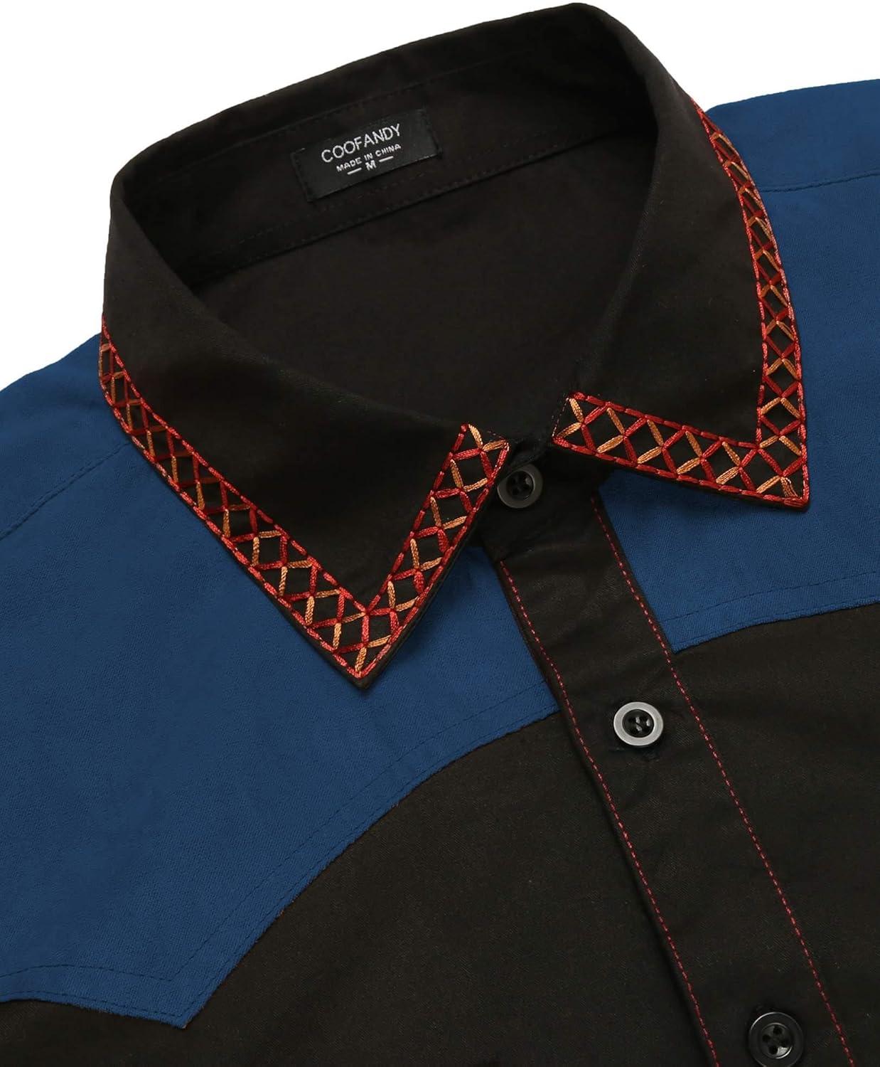 COOFANDY Men’s Western Cowboy Shirt Embroidered Long Sleeve Slim Fit Casual Cotton Button Down Hippie Shirts with Pockets(Black & Blue)