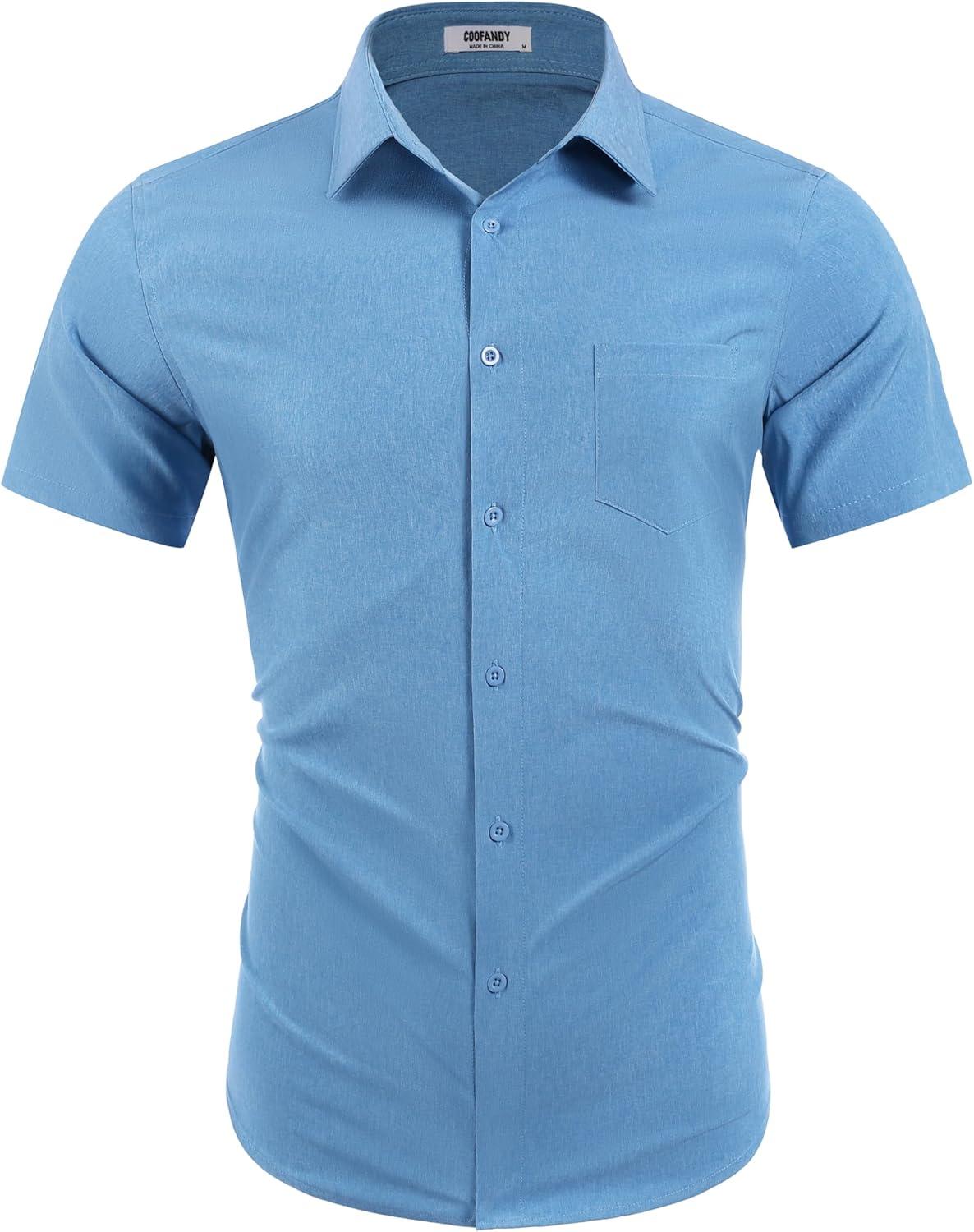 COOFANDY Mens Wrinkle Free Shirts 2025 Short Sleeve Casual Button Down Summer Dress Shirts(Blue)