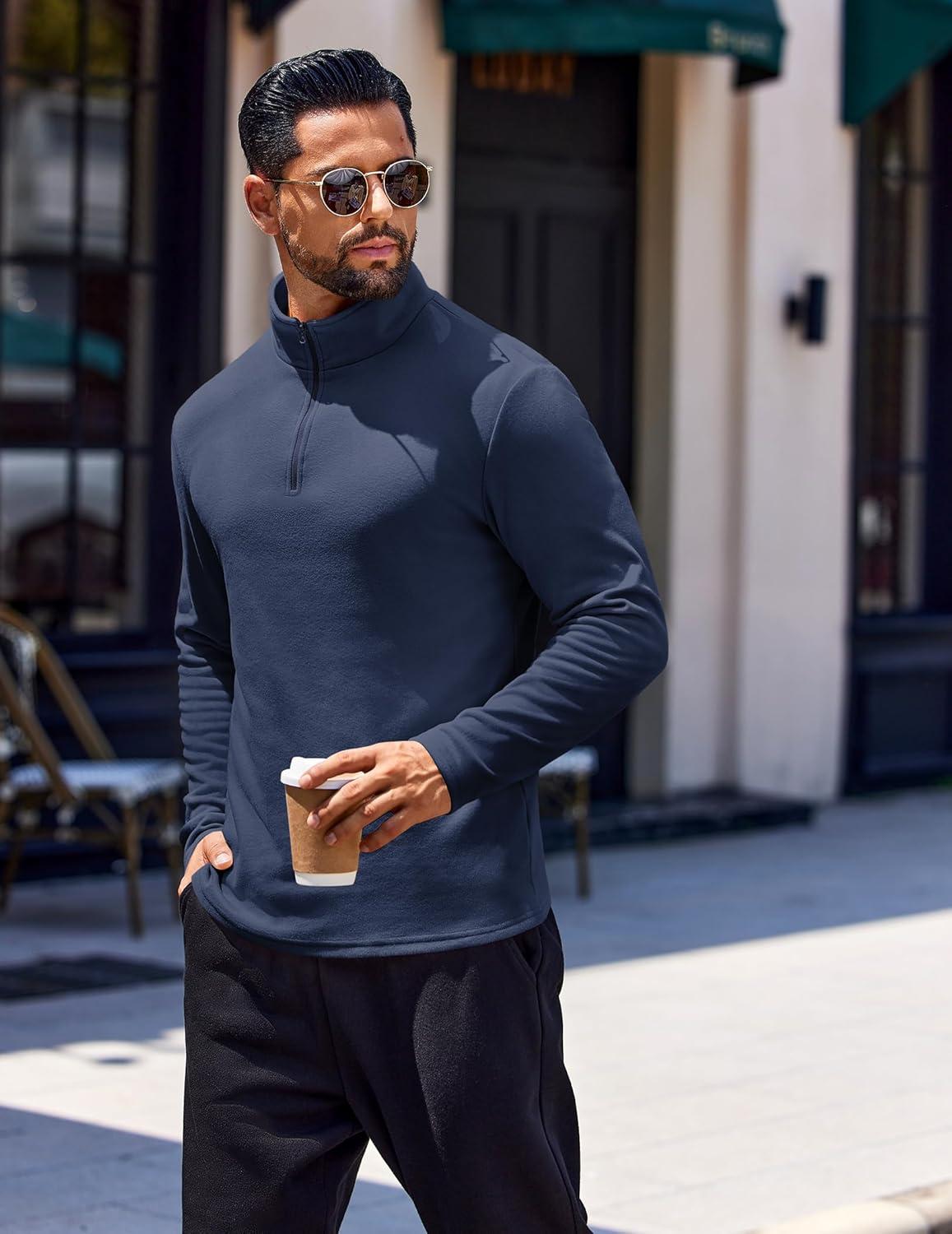 COOFANDY Quarter Zip Pullover Men Long Sleeve Sweatshirts for Men Fleece Sweater Fall(Navy Blue)