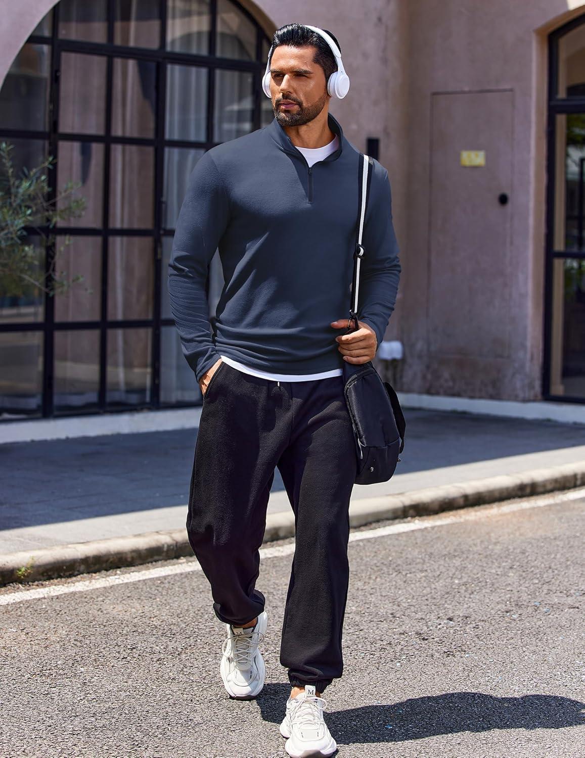 COOFANDY Quarter Zip Pullover Men Long Sleeve Sweatshirts for Men Fleece Sweater Fall(Light Grey)