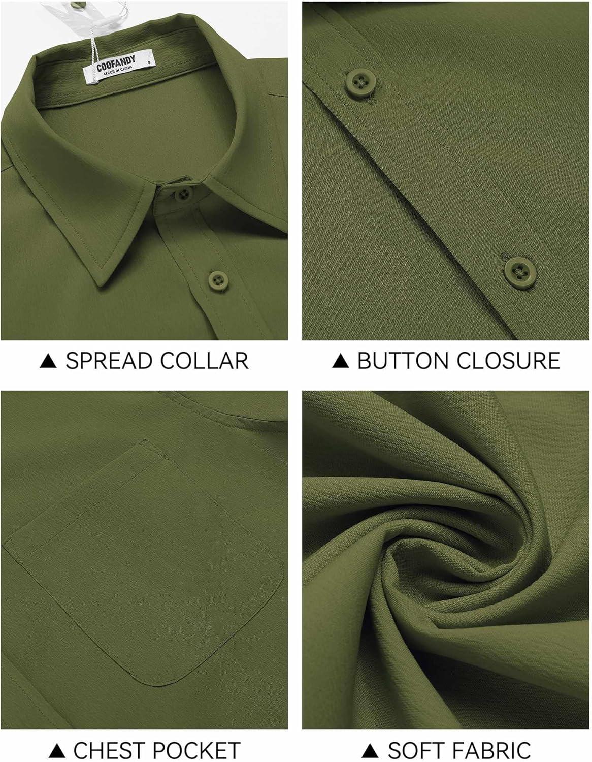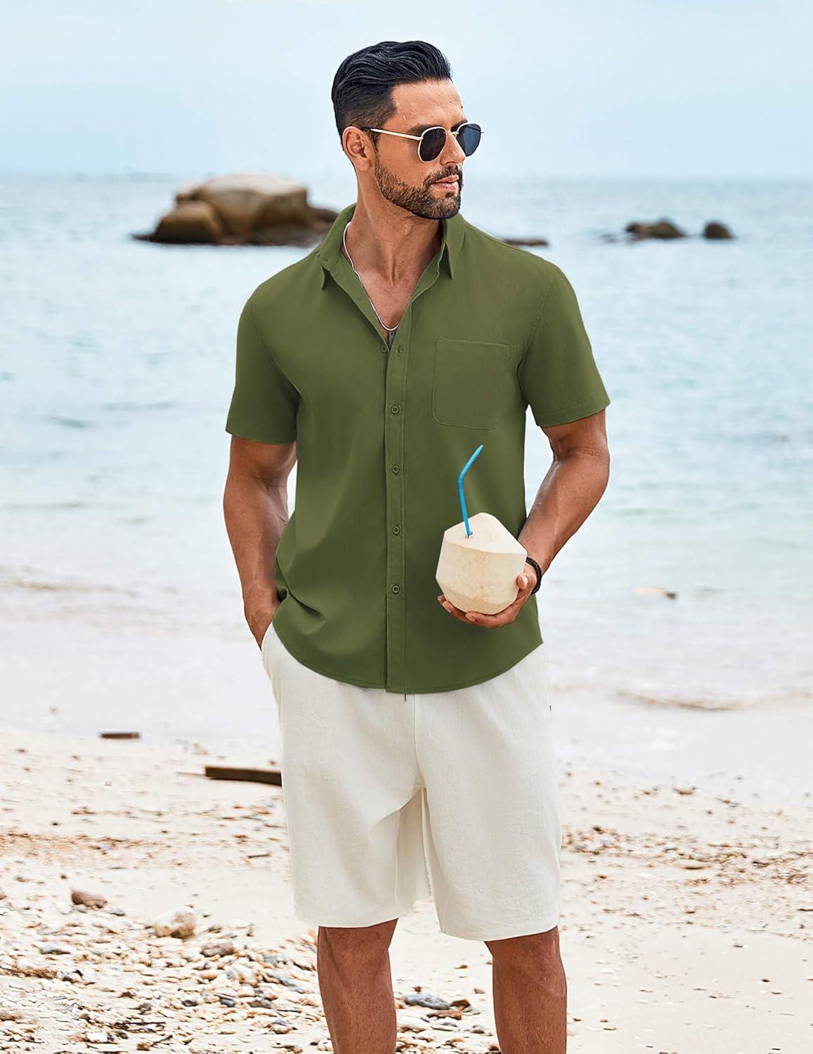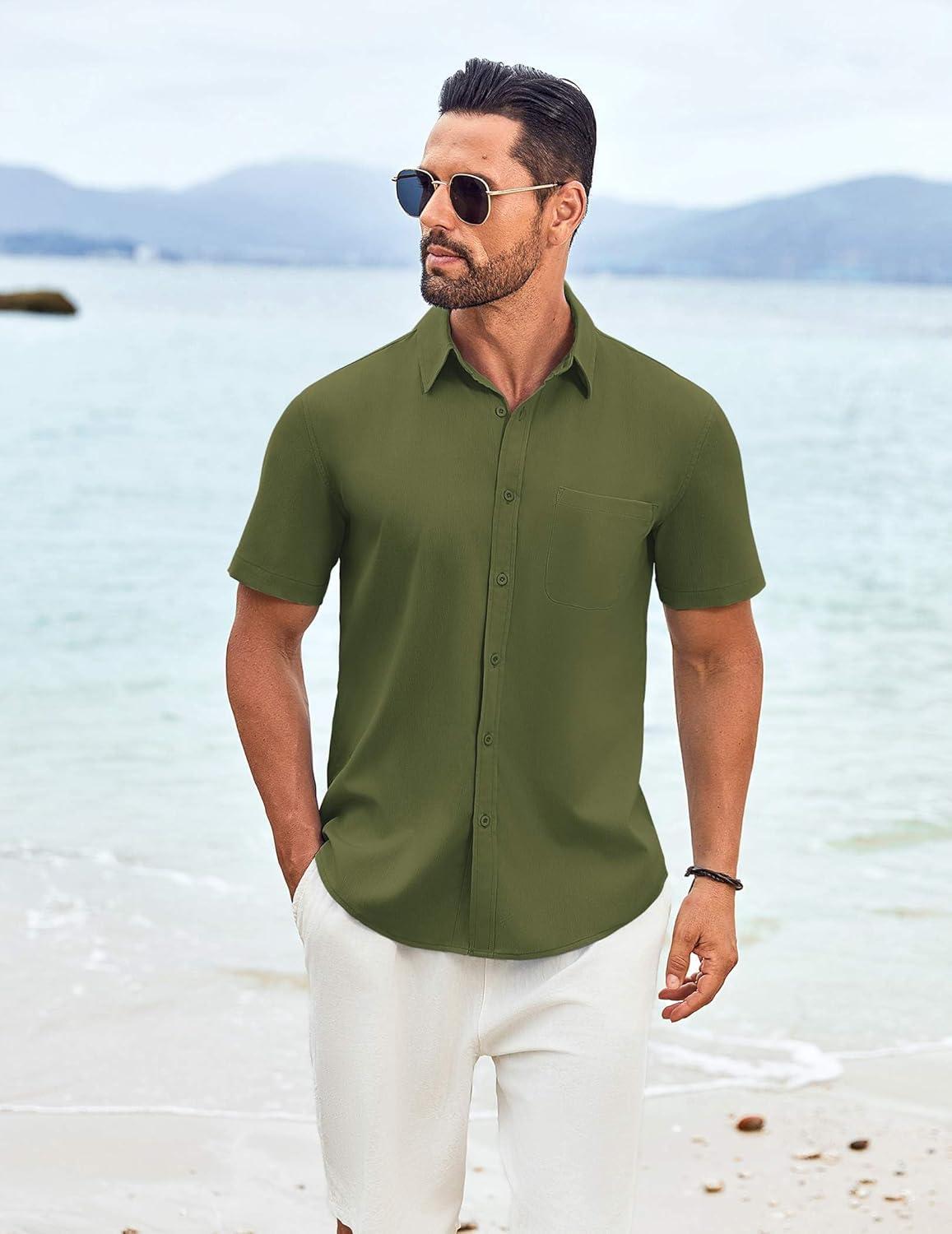 COOFANDY Shirts for Men Short Sleeve Button Down Shirt Casual Summer Beach Shirt(Army Green)