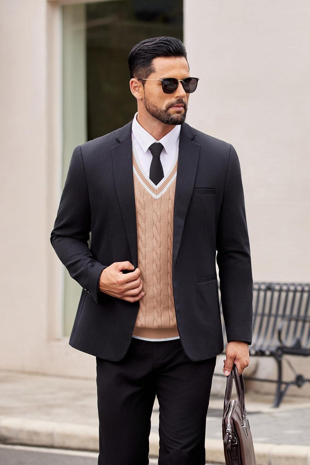 COOFANDY Sweater Vest for Men Regular Fit V Neck Sleeveless Knitted Pullovers Sweater(Navy Blue)